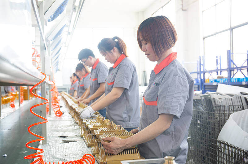 利雄電器在整個(gè)生產(chǎn)過(guò)程中嚴(yán)格執(zhí)行ISO9001:2008質(zhì)量體系標(biāo)準(zhǔn)進(jìn)行運(yùn)作,從前期機(jī)加工、拋丸噴塑,到生產(chǎn)線部件組裝,最后檢驗(yàn)、測(cè)試?yán)匣?,每個(gè)流程之間無(wú)縫對(duì)接,同時(shí)還引進(jìn)了更先進(jìn)的生產(chǎn)設(shè)備和技術(shù)力量來(lái)提高產(chǎn)品質(zhì)量和產(chǎn)能。通過(guò)多年沉淀,工廠已擁有大批技術(shù)熟練的生產(chǎn)技術(shù)人員,年生產(chǎn)能力達(dá)20萬(wàn)套,現(xiàn)擁有2條機(jī)加工產(chǎn)線,5條裝配生產(chǎn)線,110余名產(chǎn)線工人。